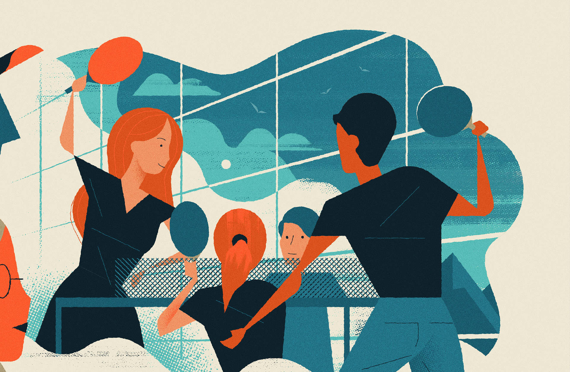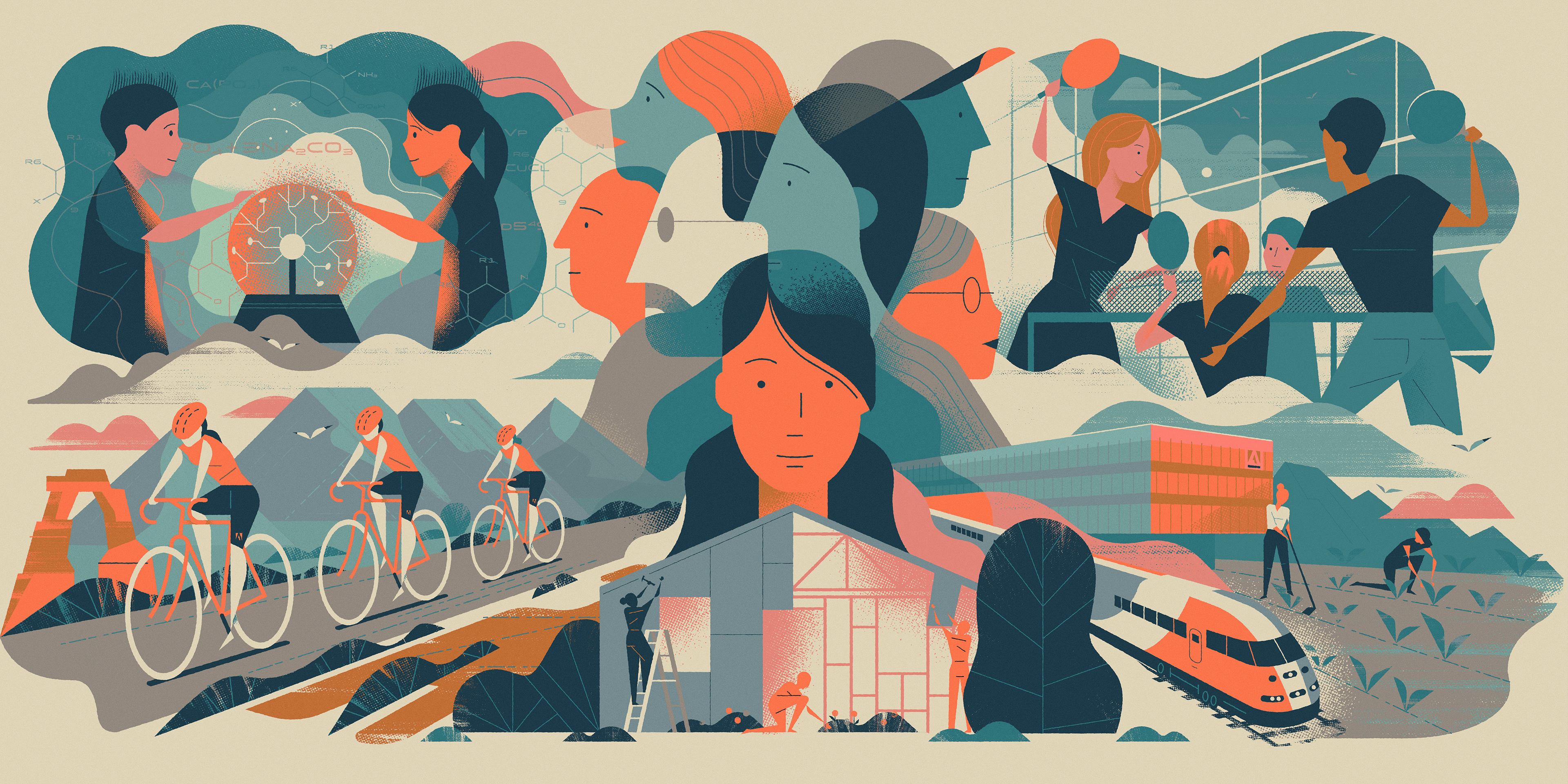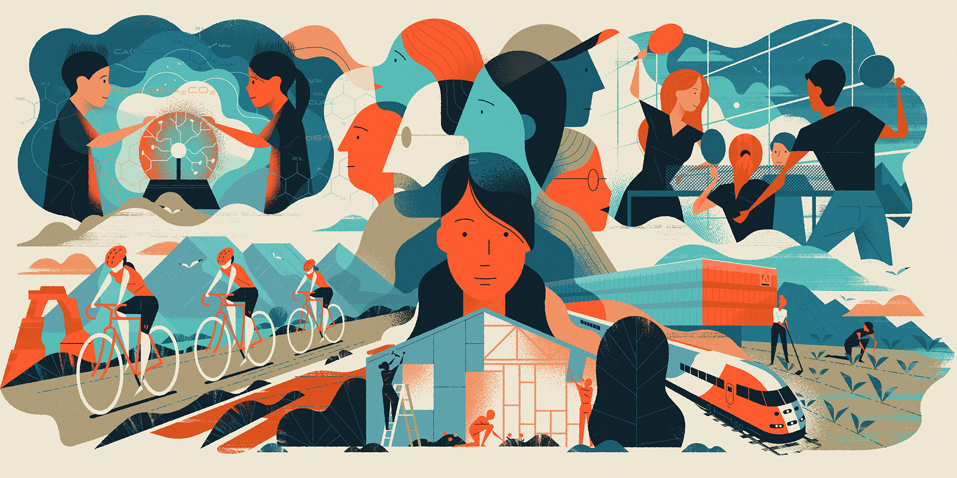 In August of 2018, I was approached by Adobe here in Utah to do an illustration representing their core values, which includes being involved in the community, the need for well-being, diversity & inclusion, etc. I needed to create a single illustration with elements representing each of these core values. Being from Utah, it was fun to include little snippets of our great state in the composition.
