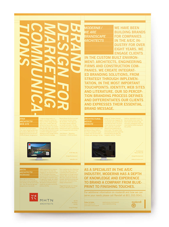 This poster was designed both as a mailer and as a leave-behind with potential clients who work in the built environment. This project was self-initiated while working at modern8. At the time, as I brainstormed marketing for our company, I kept thinking we could illustrate our brand message directly, and set about multiple times to attempt it. This illustration started out much simpler, but one day, I decided to make it more of a literal landscape, and spent most of a day and a half doing it; it was a lot of fun.