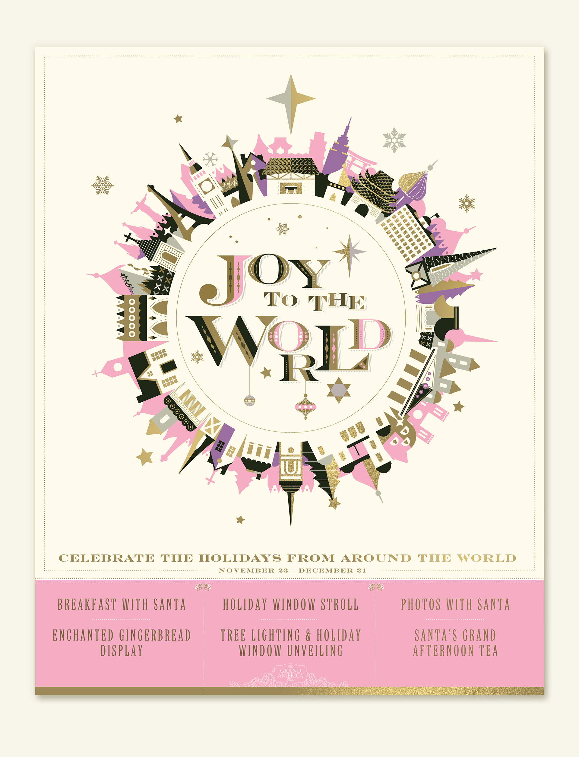 PROJECT COMPLETED: SEPT 2012 Every year, the Grand America Hotel in Salt Lake City holds a Holiday Window Stroll, featuring various decorated window displays. The displays are directed by Brent Watts at Struck SLC, and as part of the event, we design event collateral. For the 2012 event, the theme was holidays of the world. The items below were the development of this theme, including event collateral.PROJECT COMPLETED: SEPT 2012 Every year, the Grand America Hotel in Salt Lake City holds a Holiday Window Stroll, featuring various decorated window displays. The displays are directed by Brent Watts at Struck SLC, and as part of the event, we design event collateral. For the 2012 event, the theme was holidays of the world. The items below were the development of this theme, including event collateral.