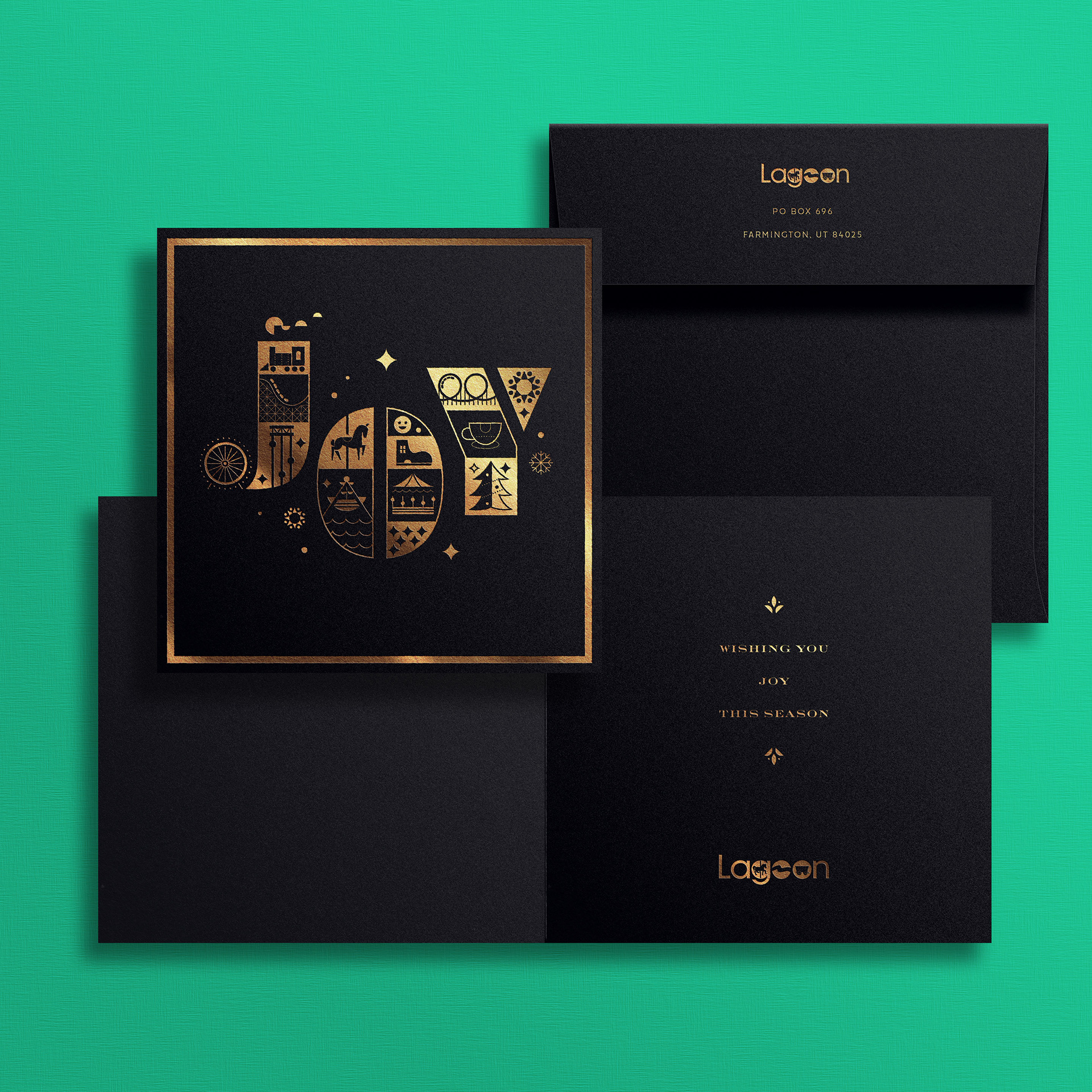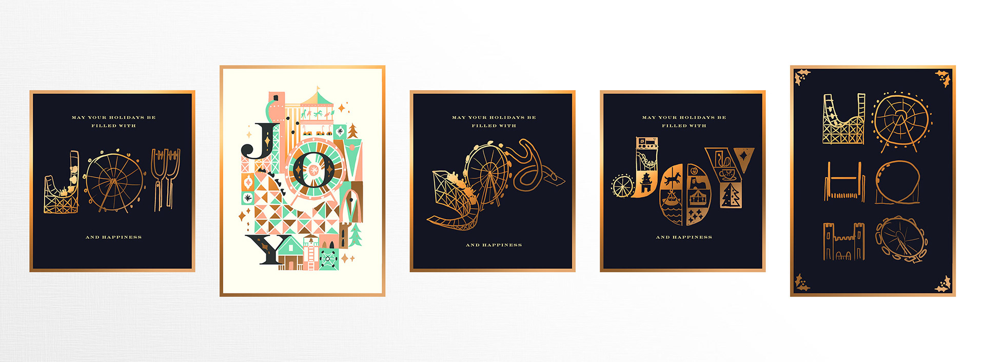 Lagoon is an amusement park located in Farmington, Utah, north of Salt Lake City. As a kid, going to Lagoon with my friends was one of my fondest summer memories. I had the privilege to work with the great people there on this Christmas card and another fun, larger project. I tried to evoke their logo with park imagery and some Christmas iconography embedded in the letterforms. Some sketches shown below as well.
