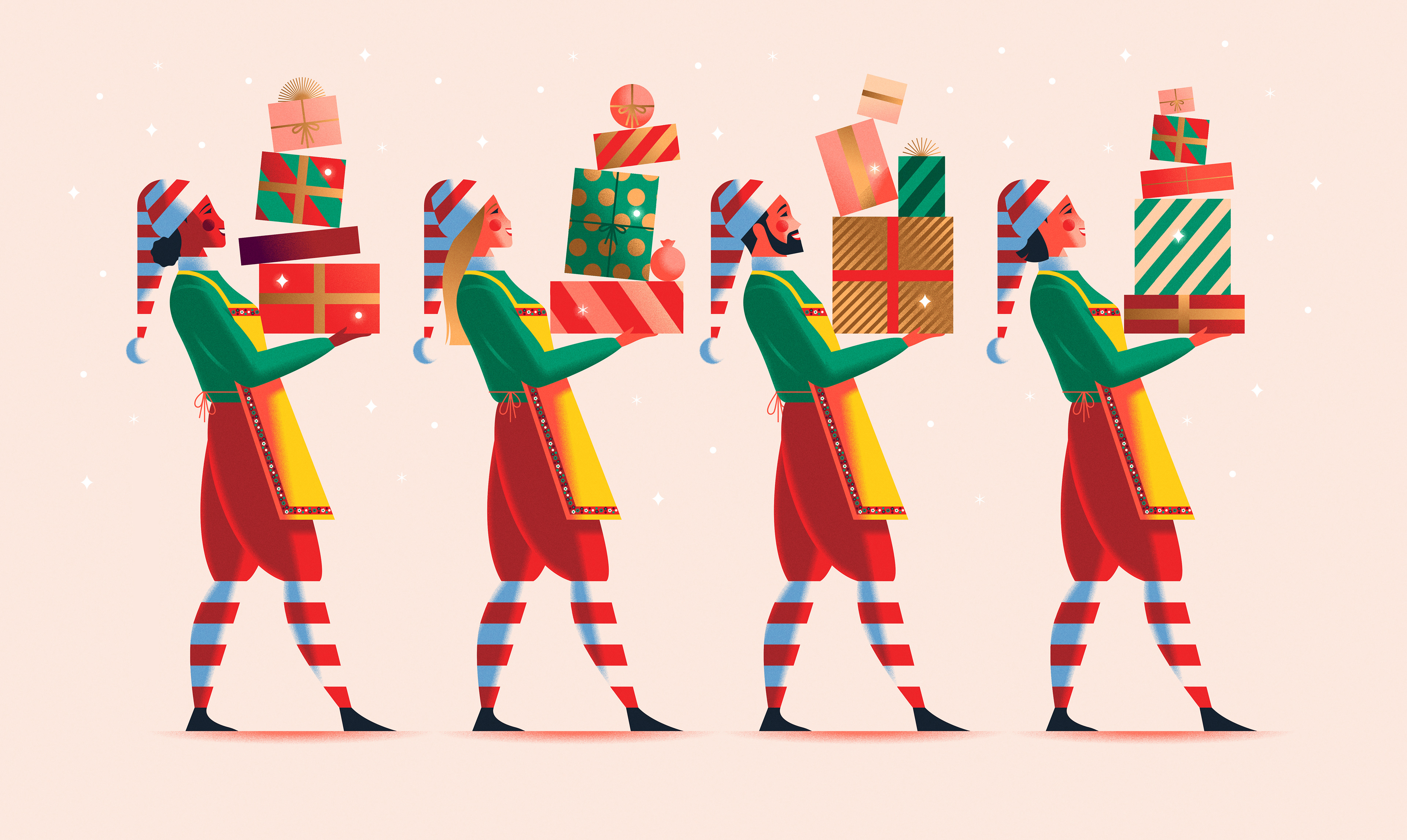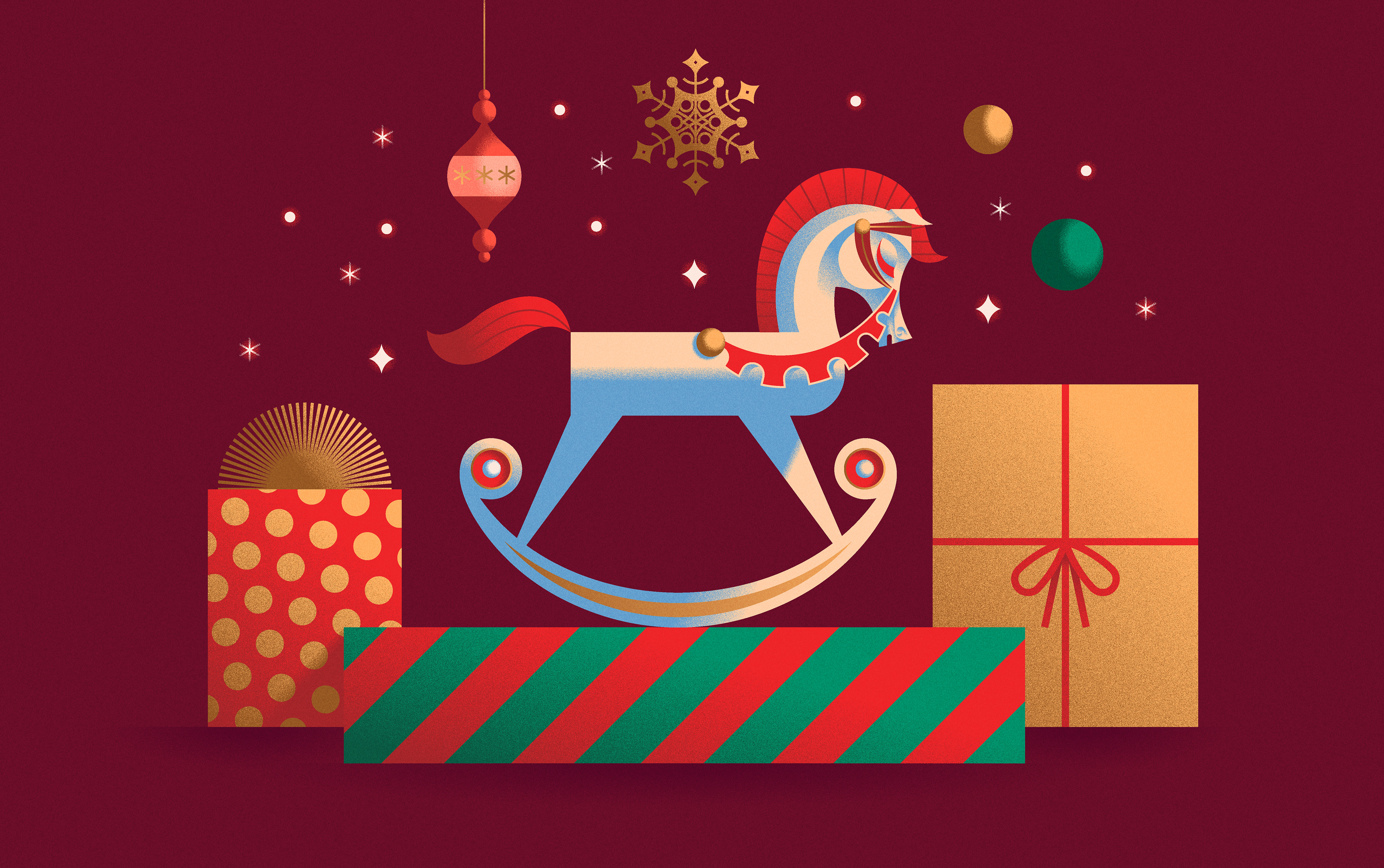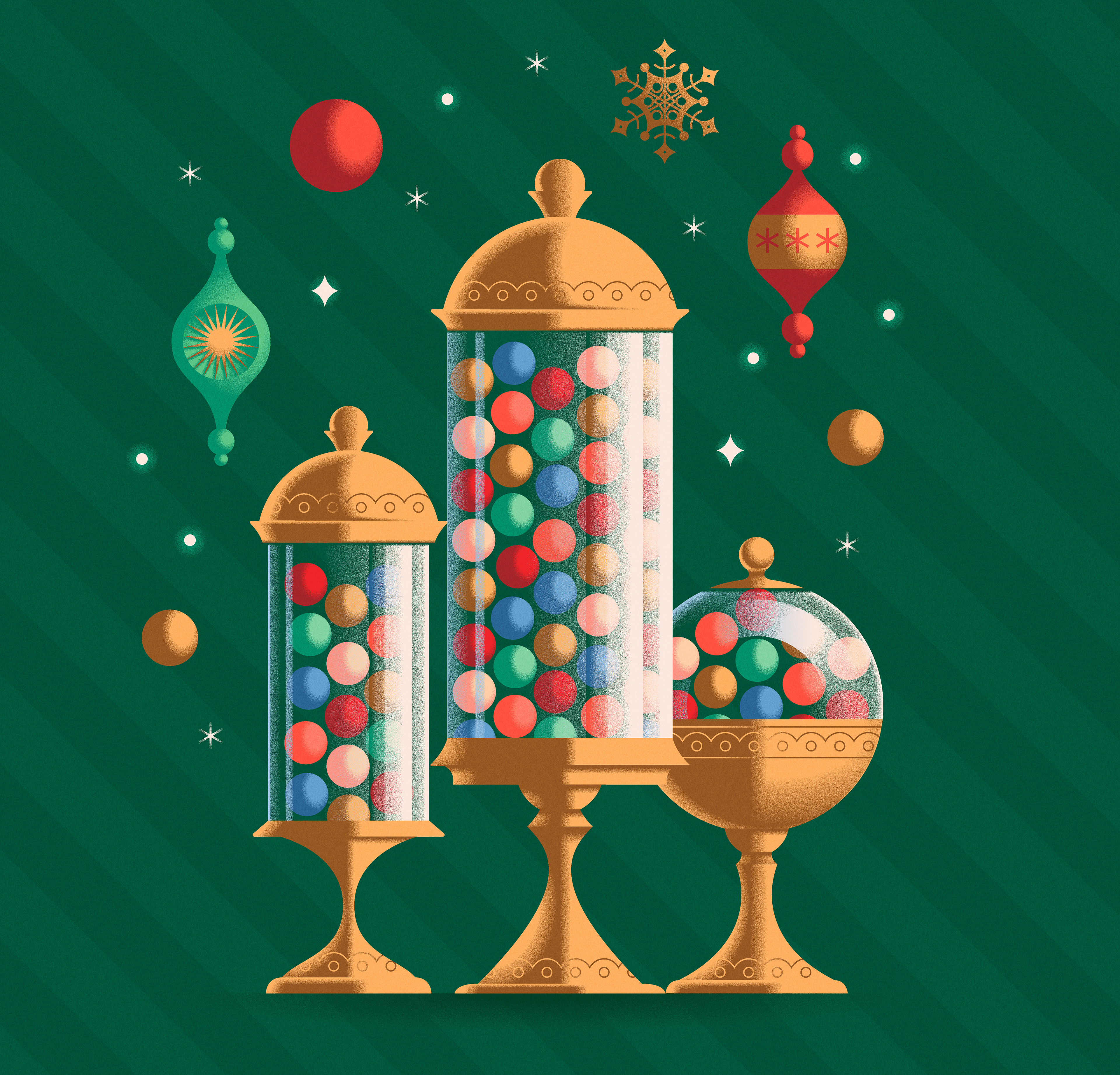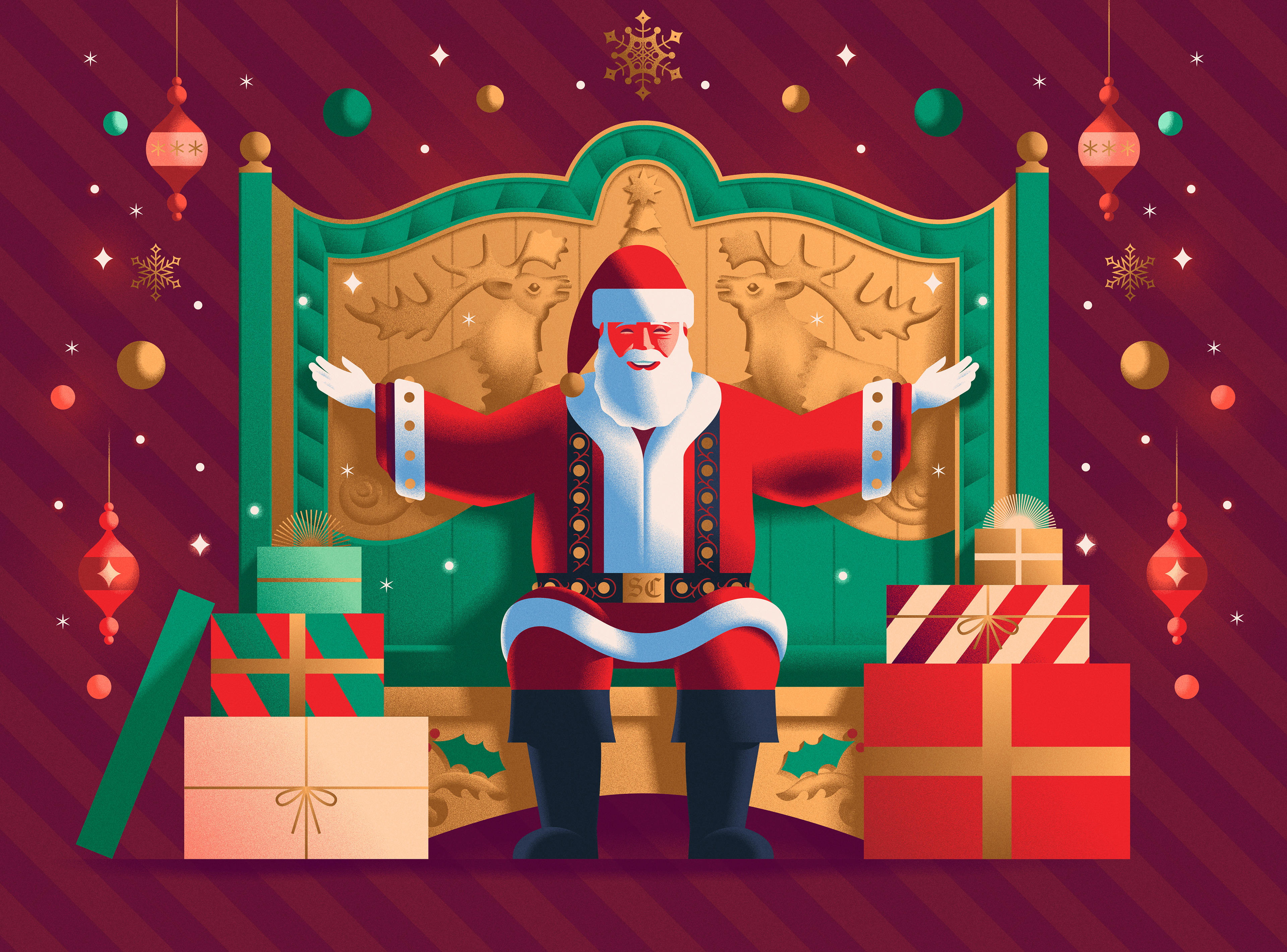 At the end of the Macy's Thanksgiving Day Parade, the Santa Claus float is the last of all, and as a finale, he steps down from the sleigh and makes his grand entrance into the Herald Square entrance of the historic Macy's store, kicking off the Christmas / Holiday season. As the second part of the Macy's Thanksgiving Day Parade project, I had the privilege to illustrate an array of images. and create typographic treatments and a logo for the Macy's Holiday Celebrations, in behalf of Mattson Creative. This is definitely not all the work, but some selects are shown here.