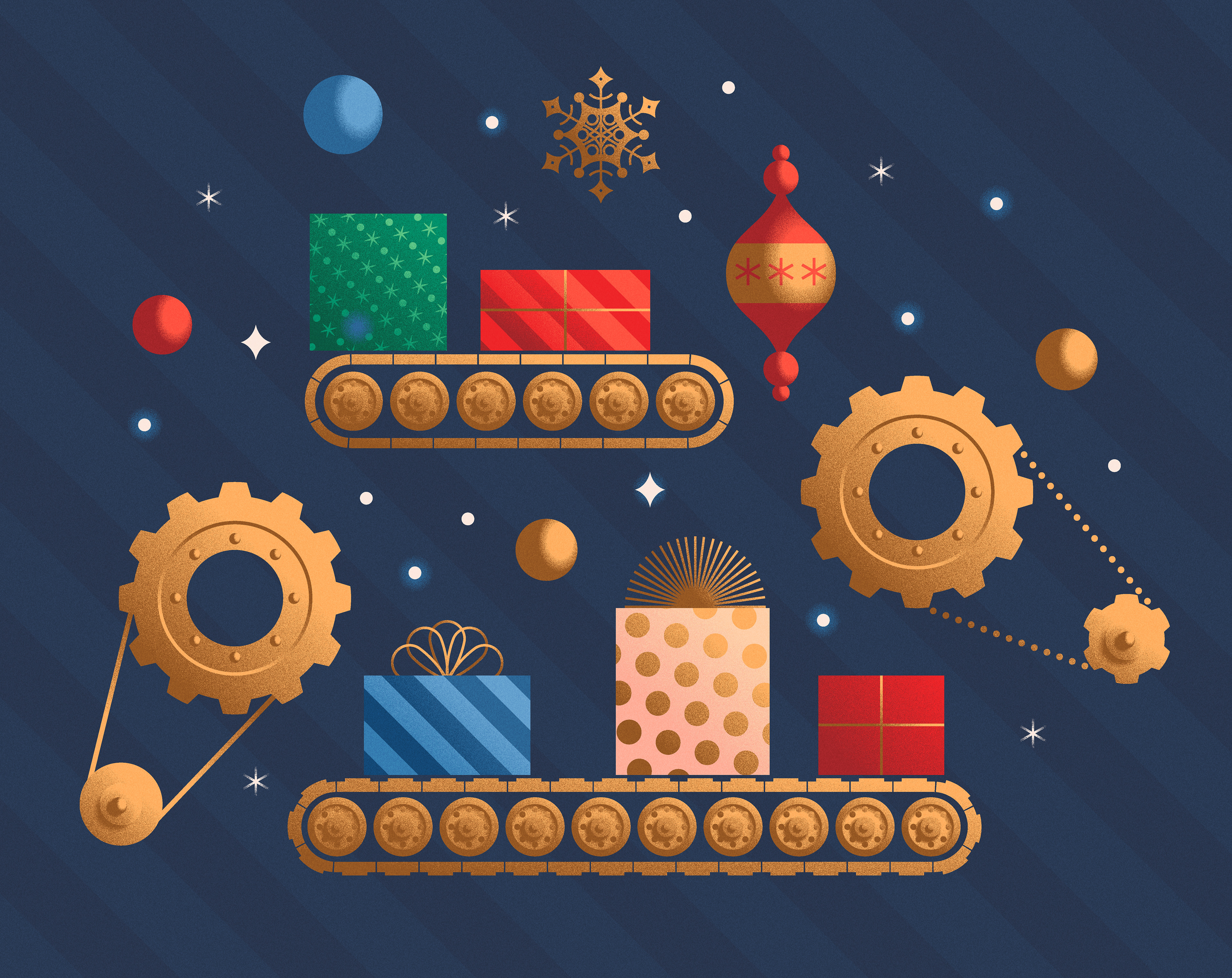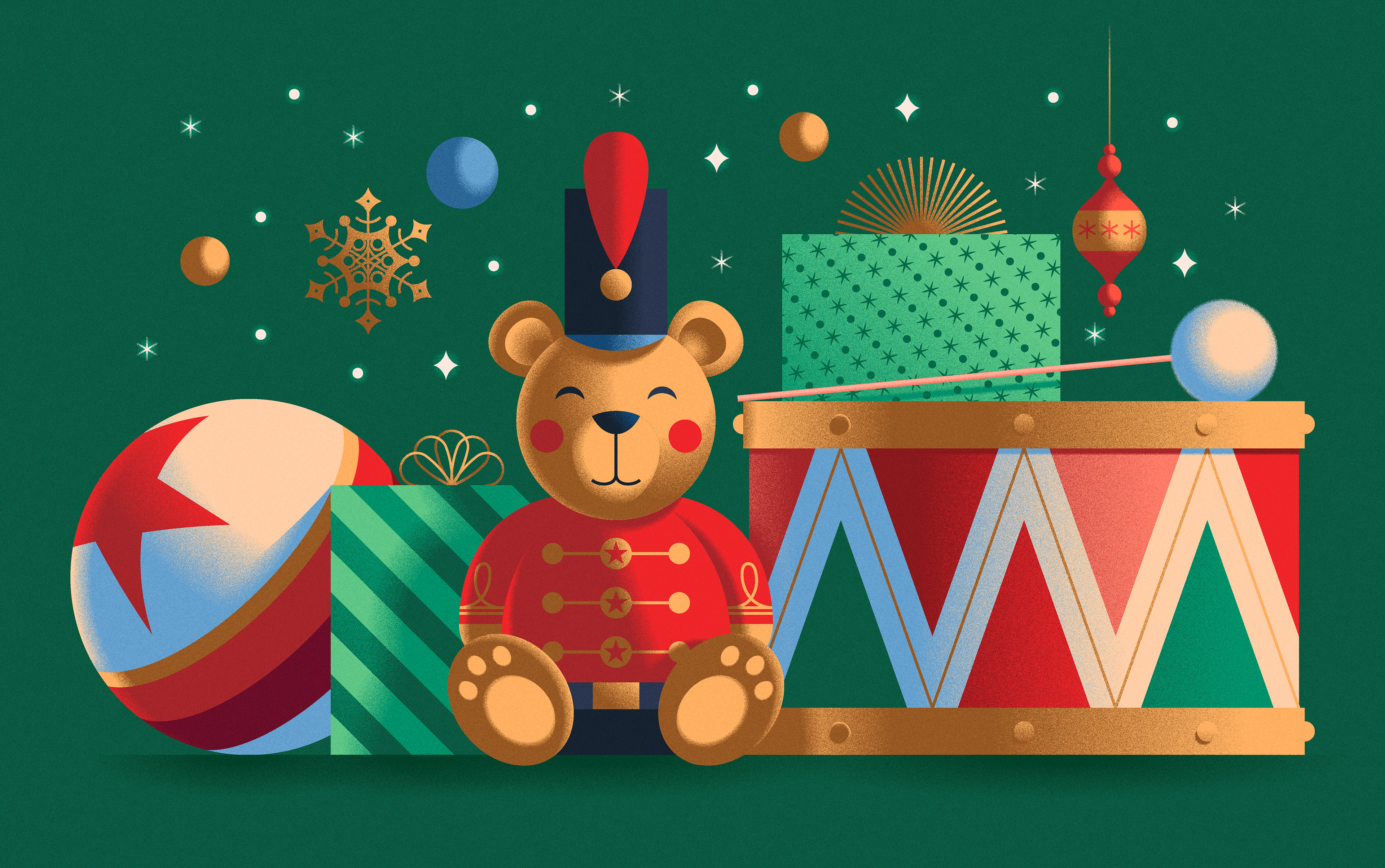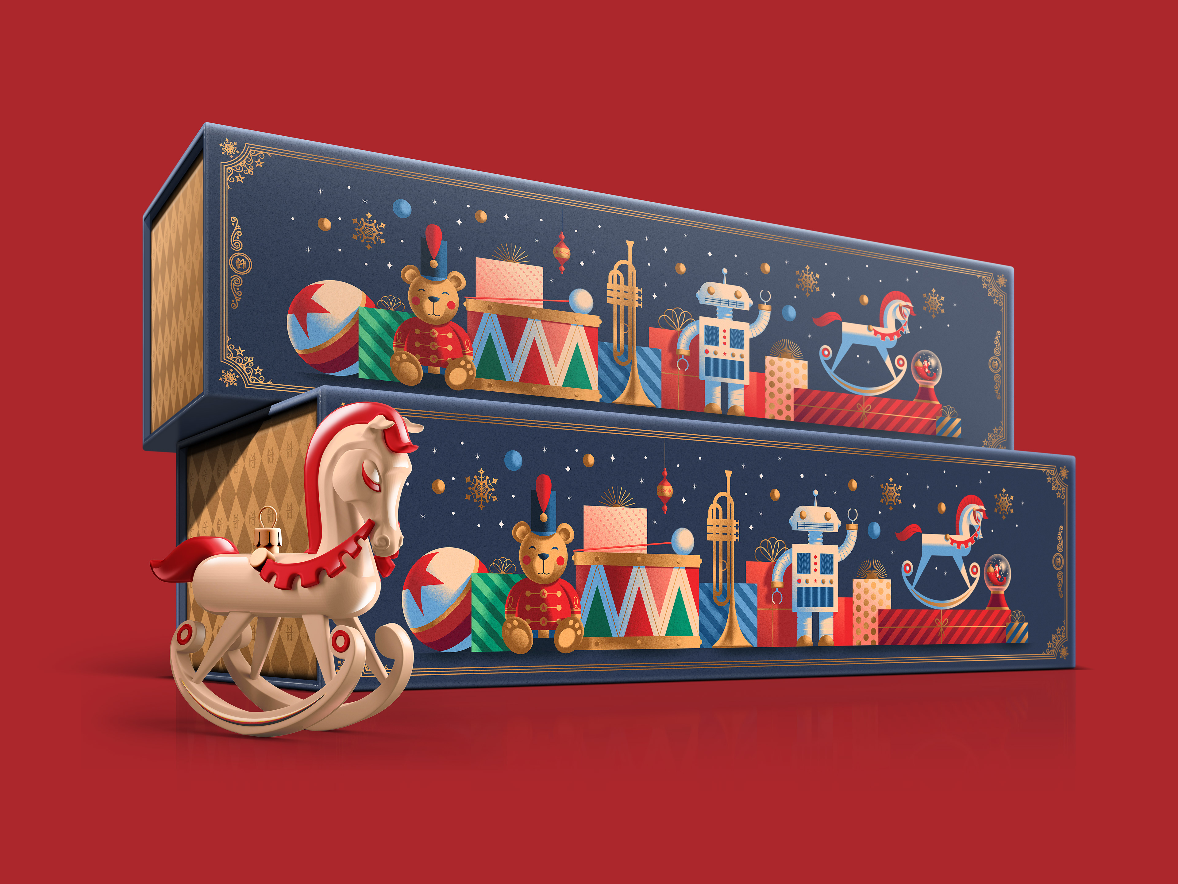 These Nutcracker renders were created entirely in Illustrator, using gradients and transparency masks to create the glossy highlights and shadows.