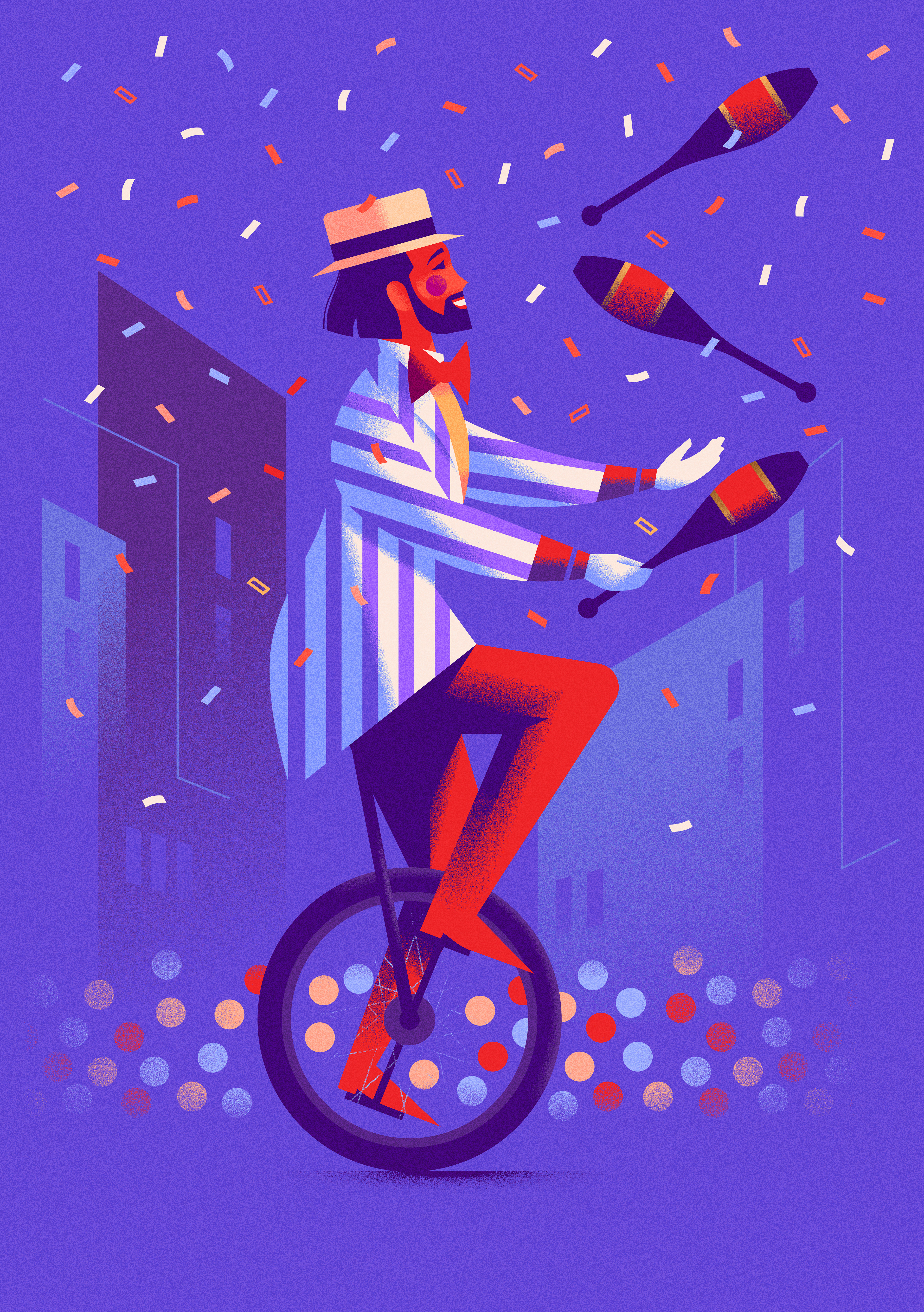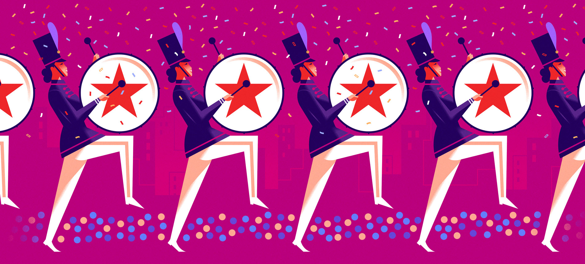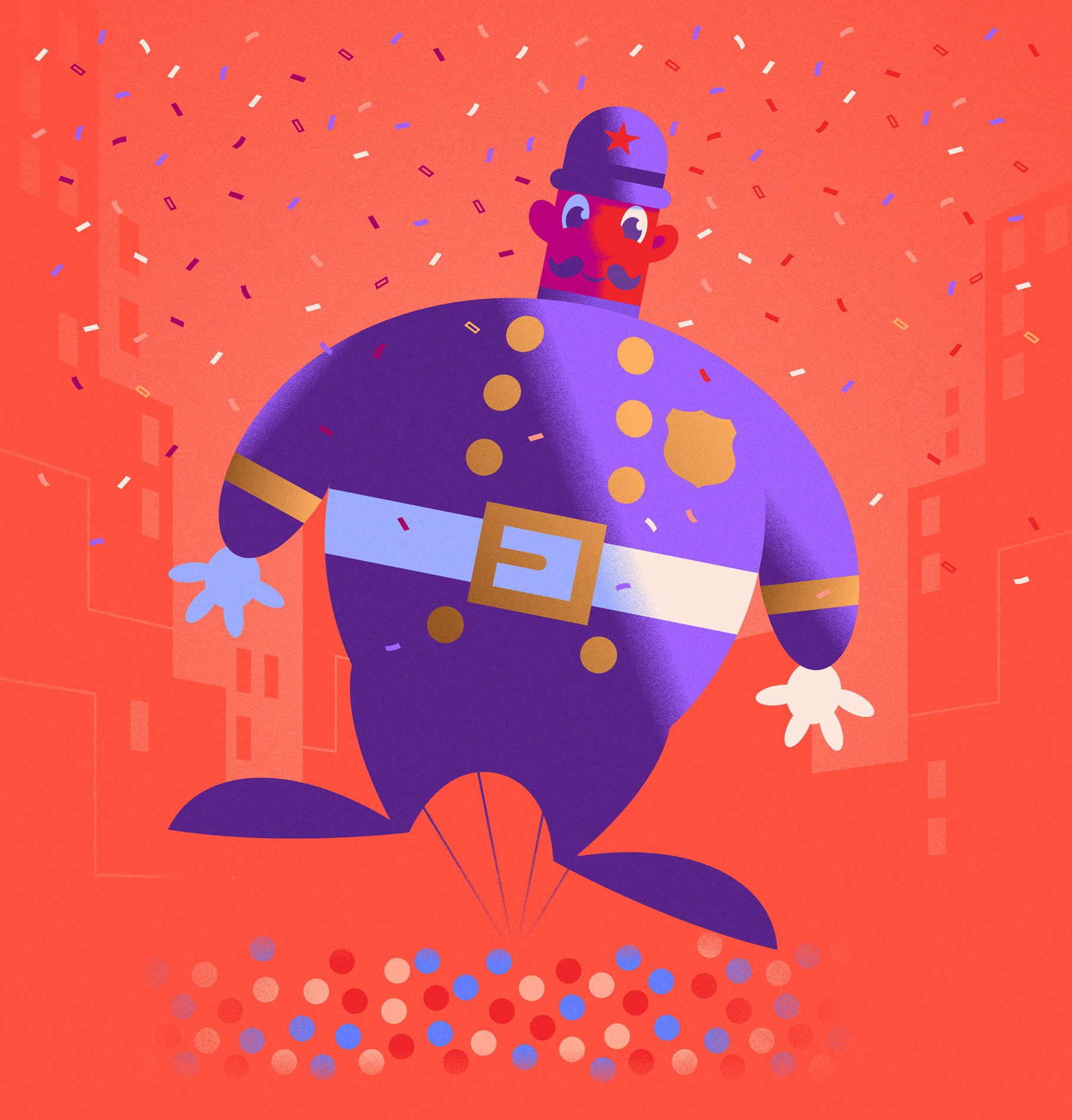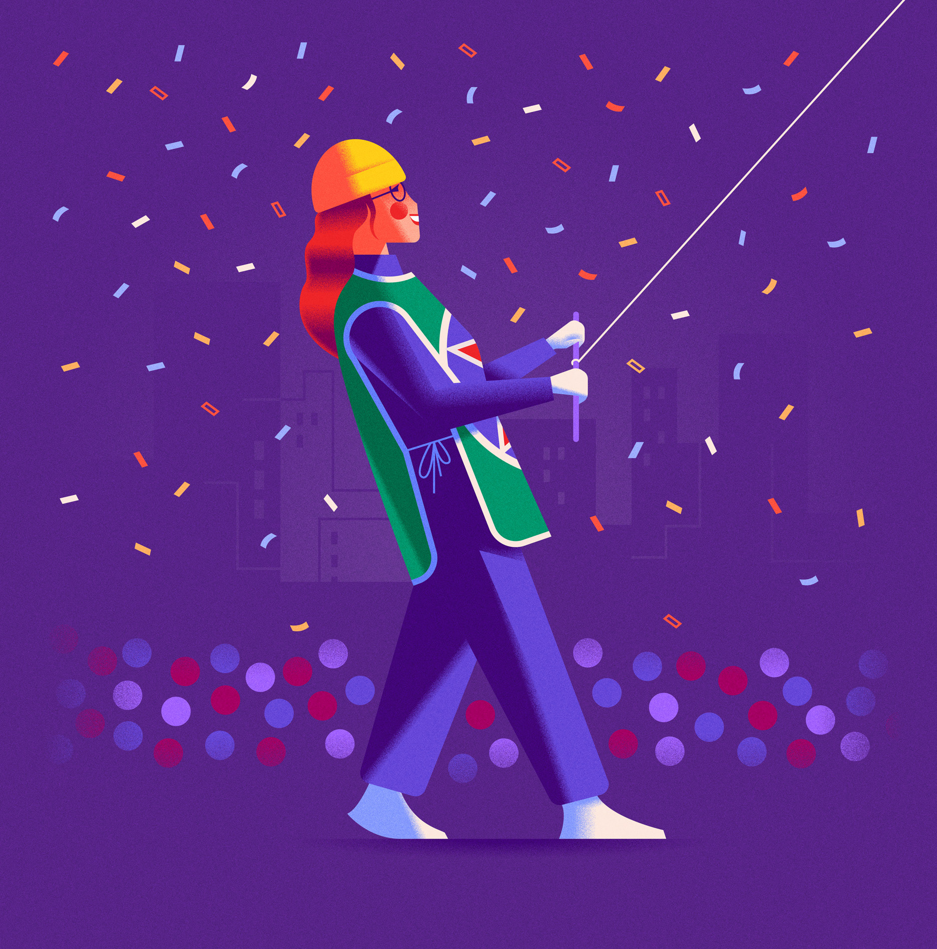 The idea of the illustration style and subject-matter was to create a sense of nostalgia, while not feeling "old". Our aim was to tell the story of the excitement and thrill of the parade, from the perspective of those participating in the parade (dancers, balloon handlers, etc). Often the parade is pictured from the perspective of spectators, but we wanted to tell the story of those who put in hours and years of work to have the privilege of being a part of this historic yearly event.