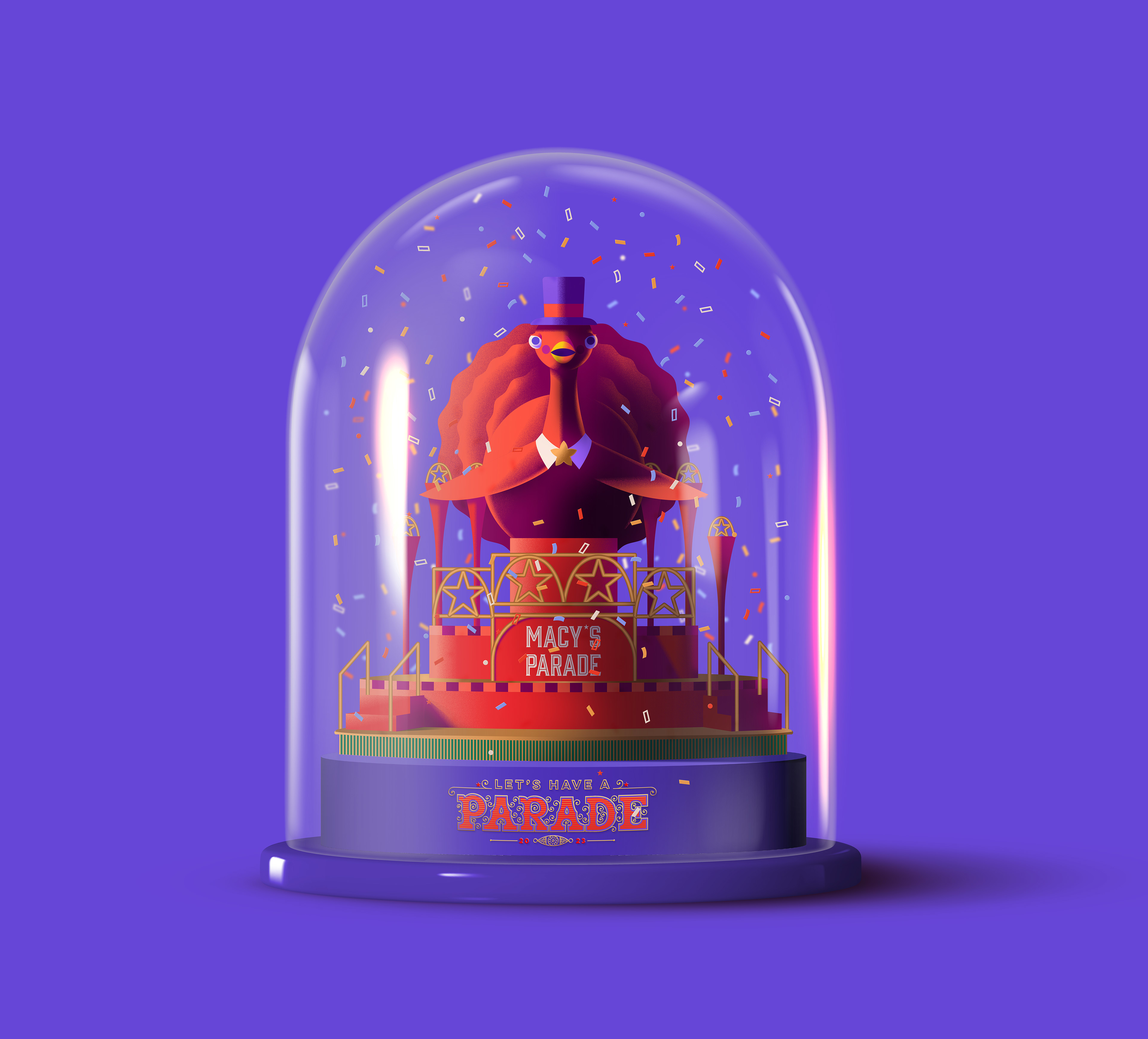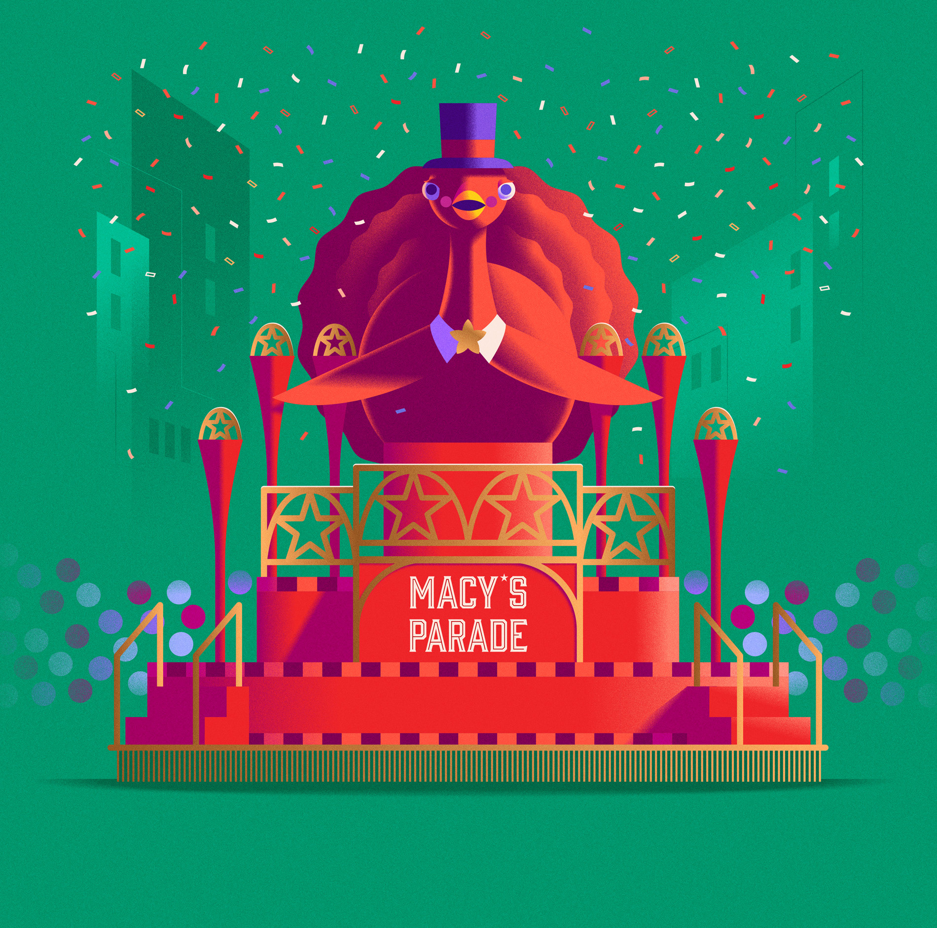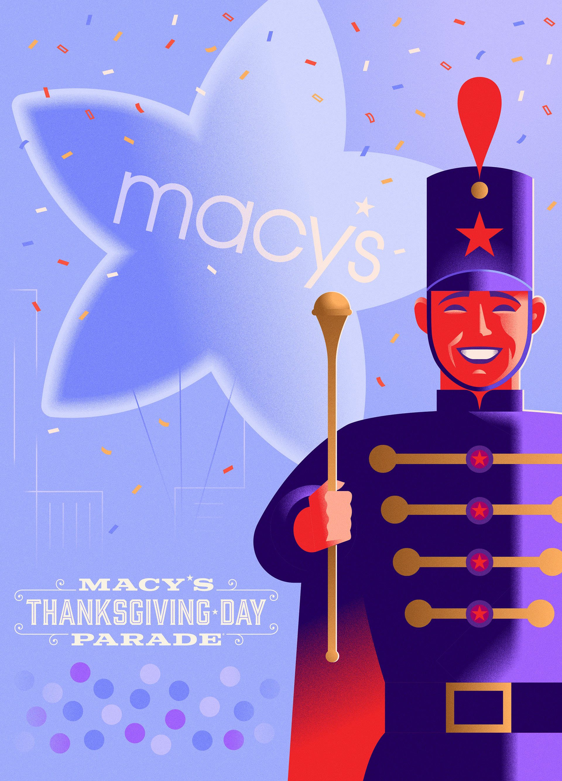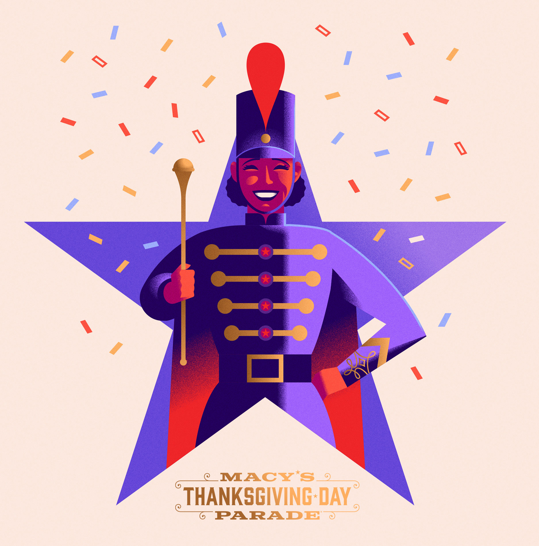 The Macy's Thanksgiving Day Parade has been a staple in American culture for 100 years. I remember having it playing on the (very small) TV on Thanksgiving mornings at my childhood home. It was a privilege to work with my friend Ty Mattson to create the graphics and illustrations for the 2023 (99th!) parade. For this project, Ty provided initial composition sketches for many of these illustrations, making this a team effort. Kortney Carter, also at Mattson Creative, created the logo and typographic elements.