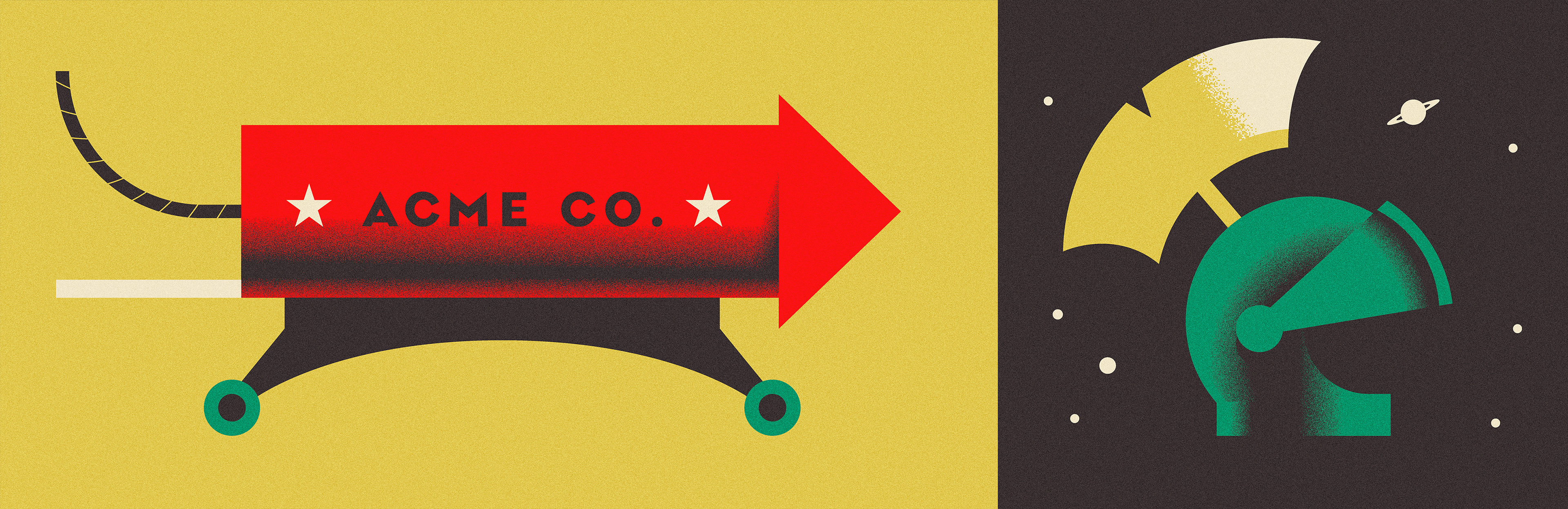 These are vector artwork, created in Adobe Illustrator. The grain texture was created as a transparency mask with a "grain" filter applied. (See the brief YouTube tutorial below).